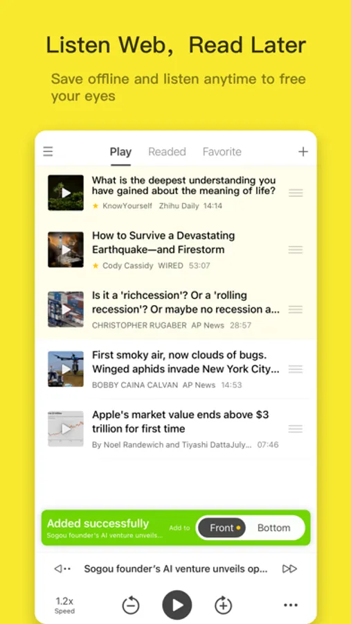 - Playlist management: conveniently adjust the playback order of articles, add and remove articles from the playlist.
