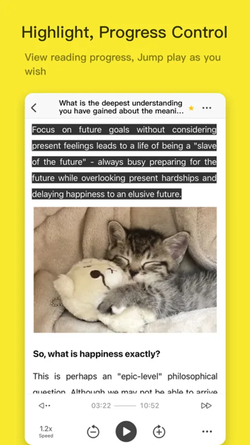 - Playback progress control: highlights the currently playing sentence, allowing you to read along while listening and click to jump to a specific part.