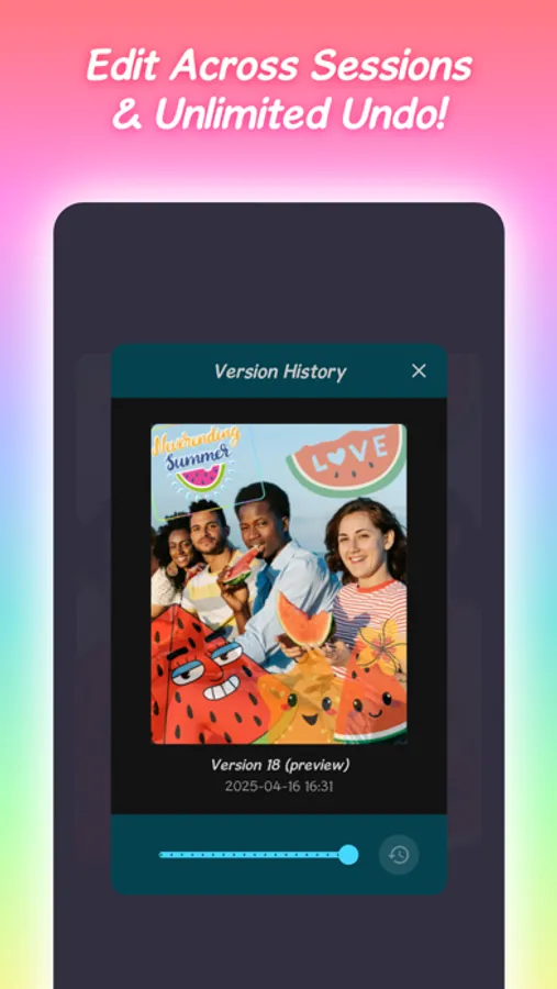 Go wild! Unlimited undo/redo & version history lets you experiment freely without worry.