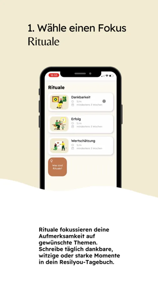 Resilyou bietet dir wissenschaftlich fundierte, kurze Übungen, um deine Resilienz zu trainieren. Mit der App kannst du mehr über deine persönlichen und sozialen Ressourcen lernen und sie dadurch besser in Krisen anwenden - mit innerer Stärke kann dich nichts so schnell aus der Bahn bringen!