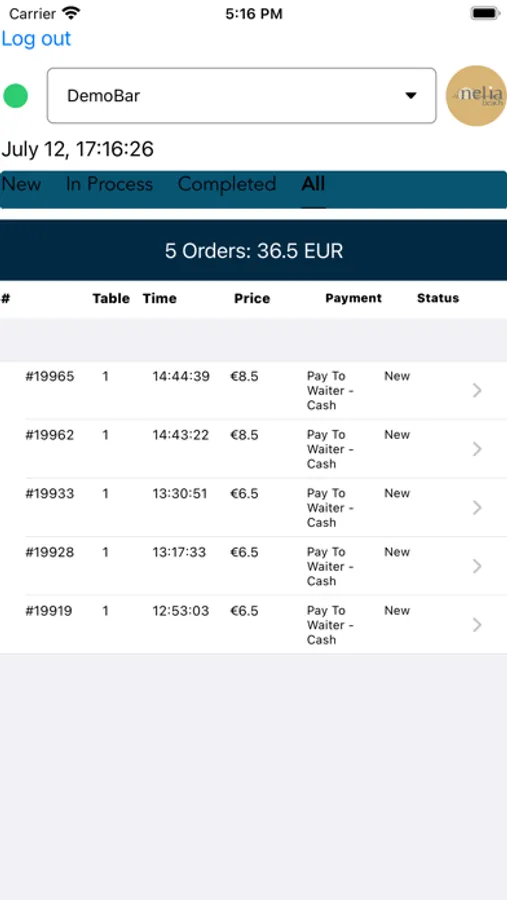 Admin Panel for monitoring and accepting orders.