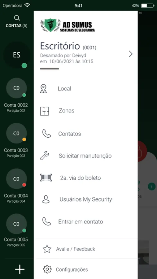 AD SUMUS 24H é um aplicativo móvel onde o cliente monitorado pode acompanhar diretamente via celular ou tablet todas as atividades do seu sistema de segurança. Por meio do aplicativo, é possível saber o status do painel de alarme, armá-lo e desarmá-lo, visualizar as câmeras ao vivo, verificar eventos e ordens de serviço abertas, além de realizar chamadas telefônicas para contatos cadastrados no seu perfil. É a segurança que você precisa na palma da sua mão.