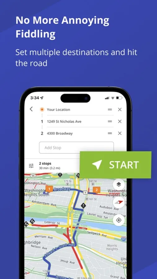 Everyone benefits from this battle-tested commercial navigation system. You stay in total control! Drag & drop stops to get commercial directions from one place to another.