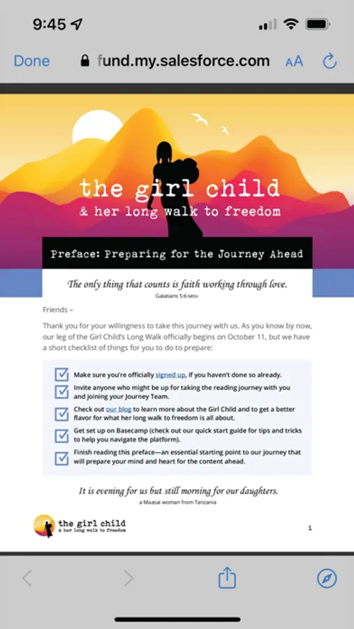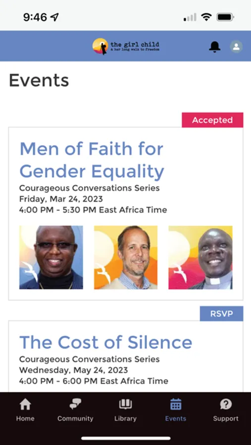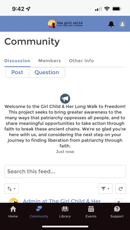The app includes access to The Girl Child & Her Long Walk to Freedom: Putting Faith to Work through Love to Break Ancient Chains, an e-book that explains and defines the deep roots of patriarchy, and explores the ways that faith offers a liberatory path from this oldest oppression. Through the app, you can connect with others “on the journey” in an online community as well as in regular, facilitated video calls, and receive notifications when new discussions and events are added. Our global community is curious, faith-inspired, supportive, and eager to “put faith to work through love.” We hope you’ll join us!