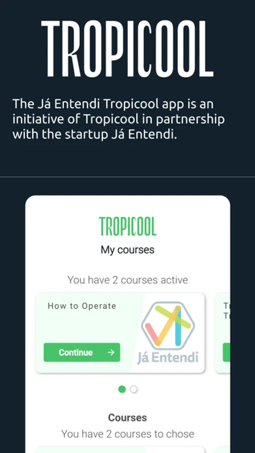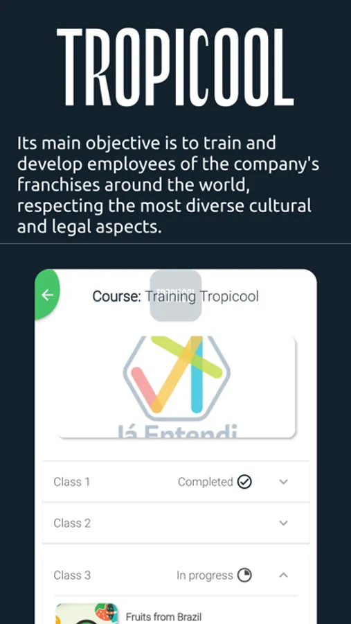 The Já Entendi Tropicool app is an initiative of Tropicool in partnership with the startup Já Entendi. Its main objective is to train and develop employees of the company's franchises around the world, respecting the most diverse cultural and legal aspects.