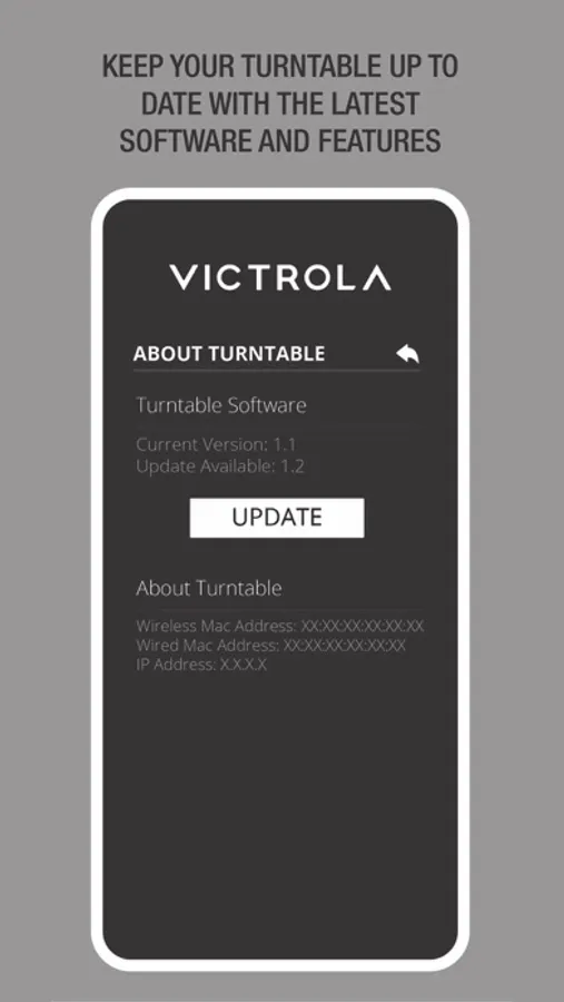 • Use the Victrola Stream app to keep your Victrola Stream updated with the latest software and features