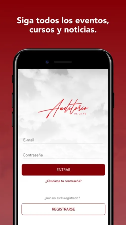 ¡Con la aplicación Auditorio de la Fe puedes seguir todo el programa de eventos y cursos, noticias y agenda de la iglesia y más!