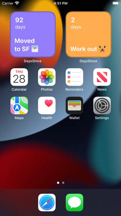 Days Since helps you count the days that passed since you last did the things that matter most to you! Create memories of important life events like starting college or a new job, keep track of when you last went to the dentist or took your dog to the vet, form new habits like a daily workout or quit old ones such as smoking.