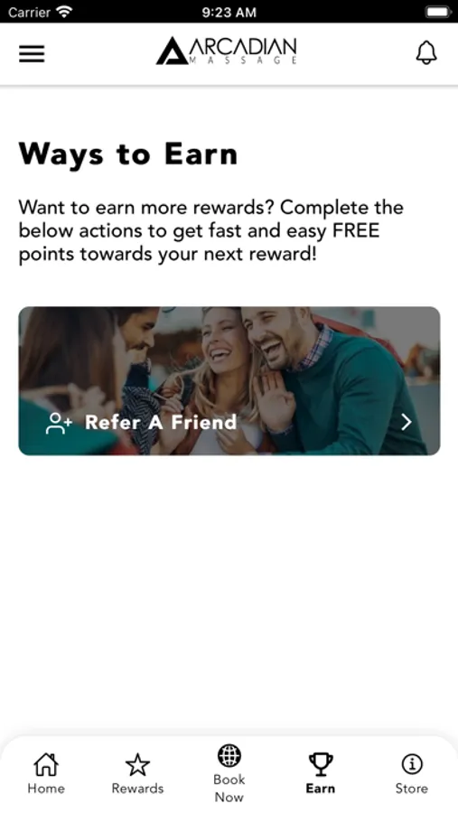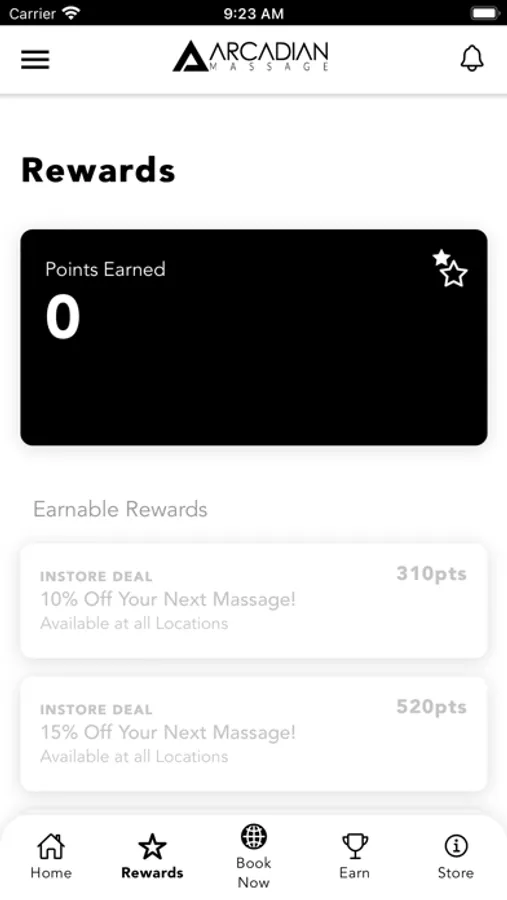 Arcadian Massage App - Earn and track your rewards at participating stores
