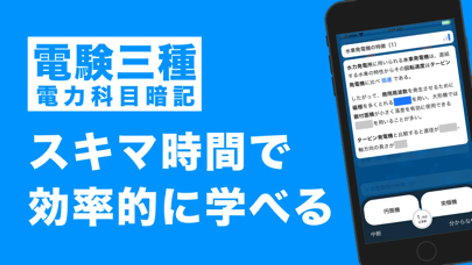 電験三種 電力科目 暗記アプリは、第三種 電気主任技術者 試験の電力科目をテンポ良く効率的に学習するためのアプリケーションです。