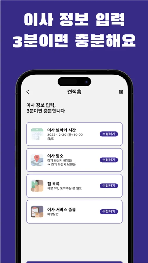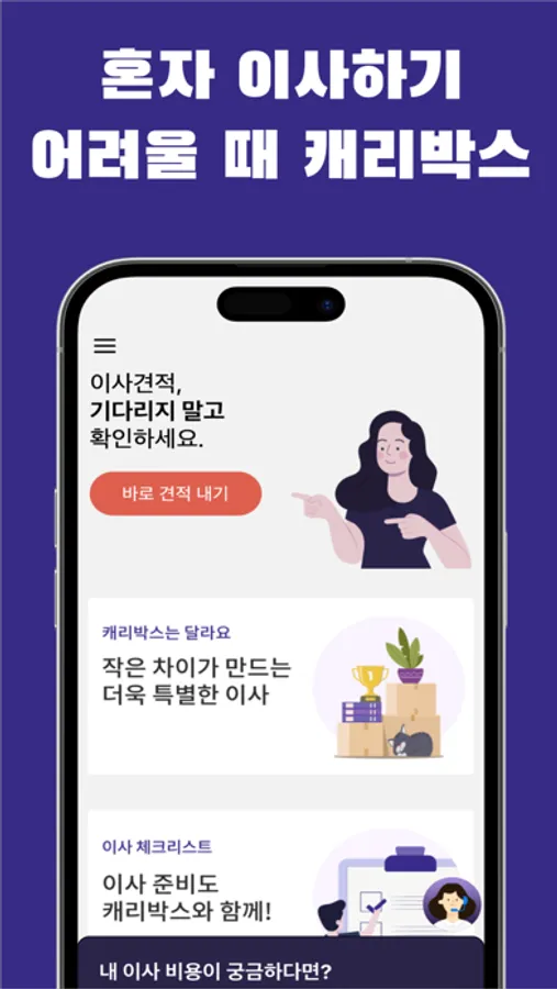 - 이사업체들의 견적을 기다릴 필요없이 즉시 내 이사 견적을 볼 수 있어요.