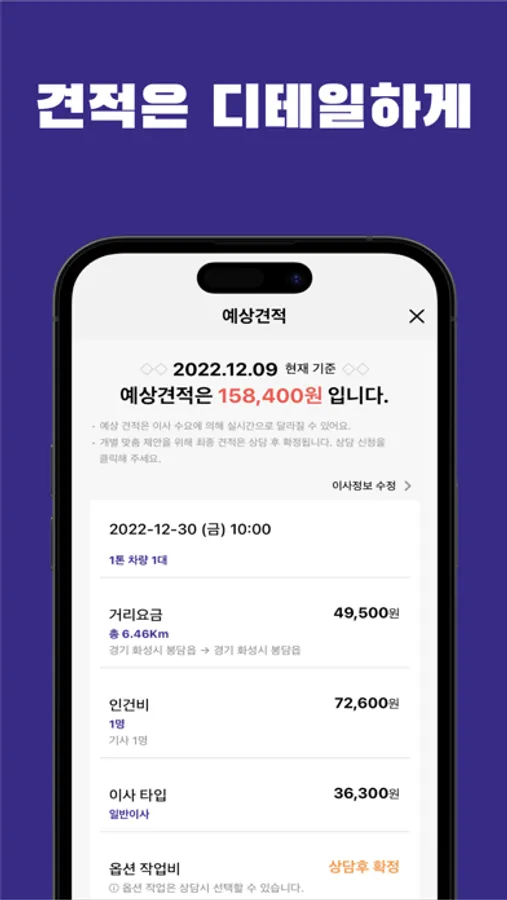 - 이동거리, 투입 인원, 작업환경, 옵션 등에 따라 비용이 산출되는 이유가 명확해요.