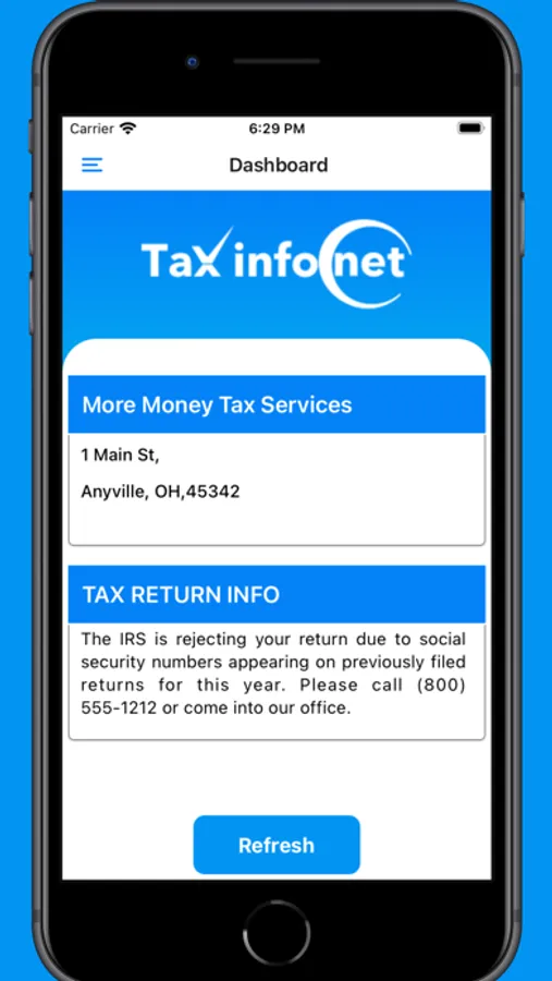 Tax Infonet works with participating tax offices. Ask your tax preparer if they use Tax Infonet. This will allow you to find out the latest status of your tax return as well as upload additional information your tax preparer may need to complete your tax return.