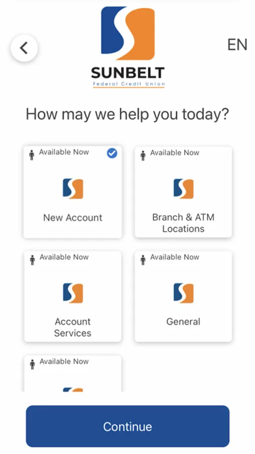 You can use the Sunbelt FCU Video Banking app to handle your everyday needs during normal business hours. We can provide account support, changes and answer general questions.