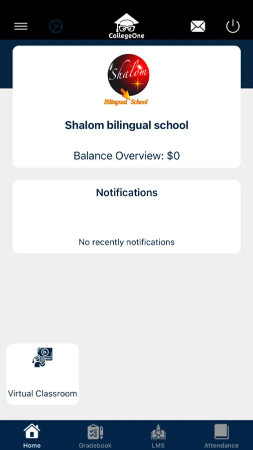 Shalom Bilingual School keeps you informed. View assignments, grades. Login Instructions 1) Enter your username and password This information is provided by your school/district. Notifications Receive immediate notifications when changes are made. App Requirements • Your school district must use CollegeOne Suite as its student information system. • An active CollegeOne Parent Portal account is required (accessed through a Web browser)