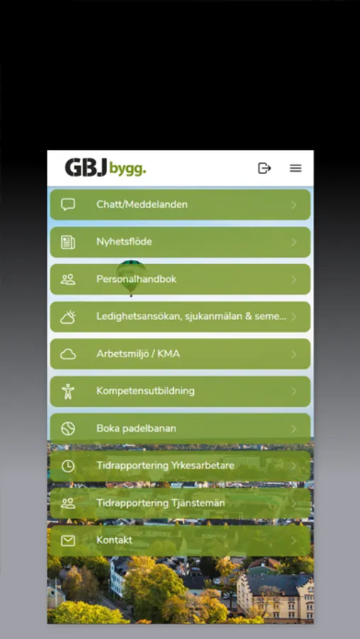 GBJ Byggs app används som ett verktyg för det interna och externa arbetet för att snabbt och smidigt komma åt information som behövs för att underlätta i det dagliga arbetet. I appen finns exempelvis information kring arbetsmiljöarbetet, personalhandbok och kontaktuppgifter. Genom appen kan du som användare även få tillgång till att boka padelbanan och se de senaste nyheterna från verksamheten.