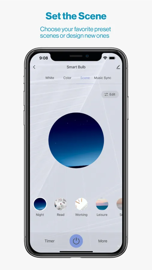 - Browse pre-set scenes or customize your own and create the perfect atmosphere for any room.