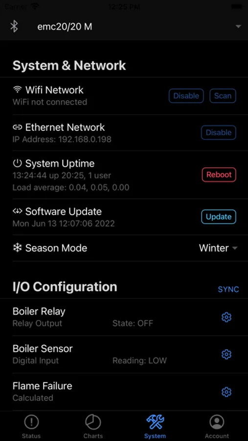 Interface app for setting up, modifying and monitoring the emc20/20 M boiler controller. Connects over BT locally or via the internet for use anywhere.