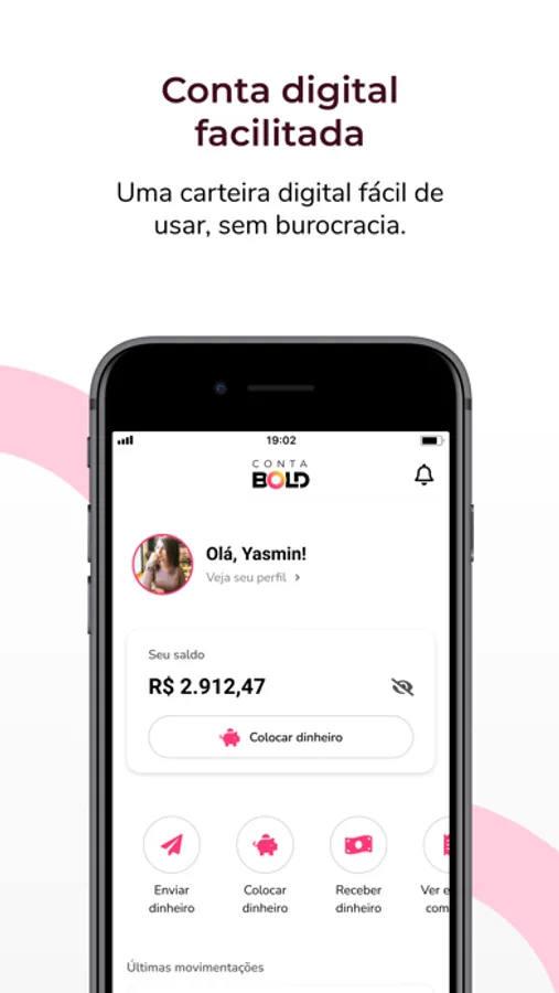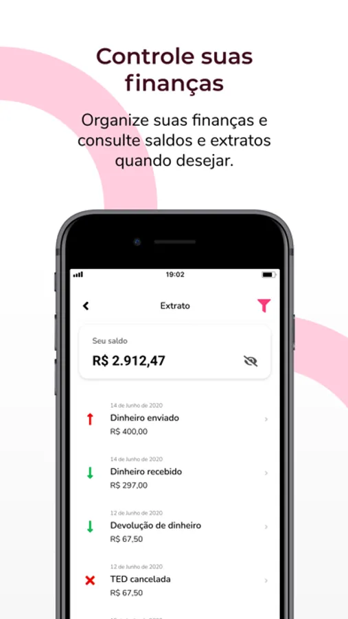 Com sua conta digital, você pode controlar suas finanças sem burocracia e direto do seu celular. Acompanhe saldos e extratos 24 horas por dia, 7 dias por semana, 365 dias por ano. Realize transferências de forma rápida, segura e fácil.