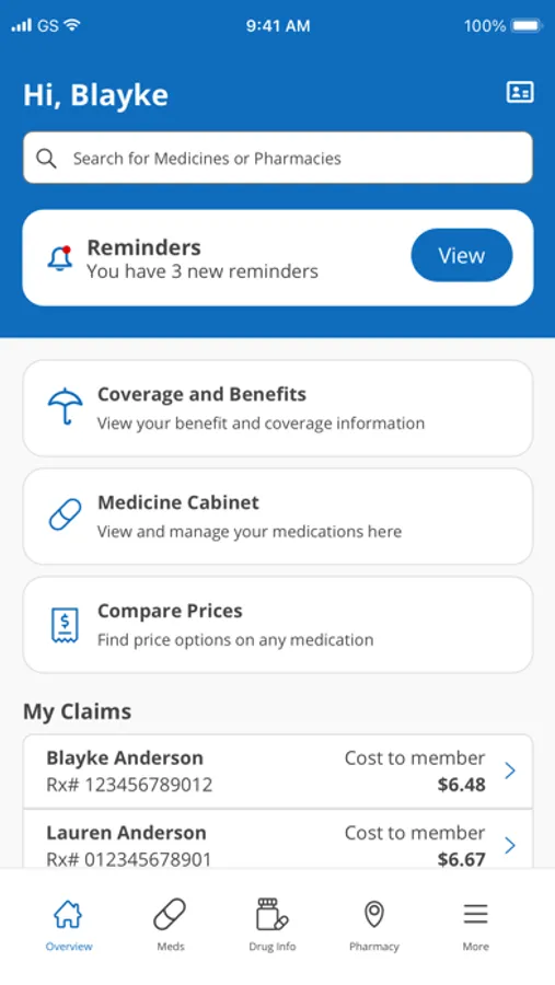 Search for drug information and cost estimates, view and compare pharmacies near you, view reminders related to your prescriptions, and identify savings opportunities to get the lowest price on your prescriptions.