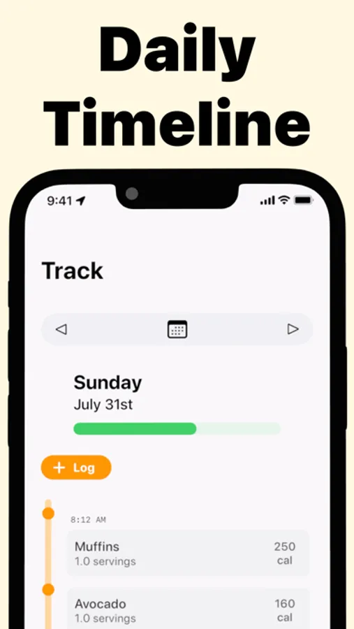 - Timeline view of food and exercise.