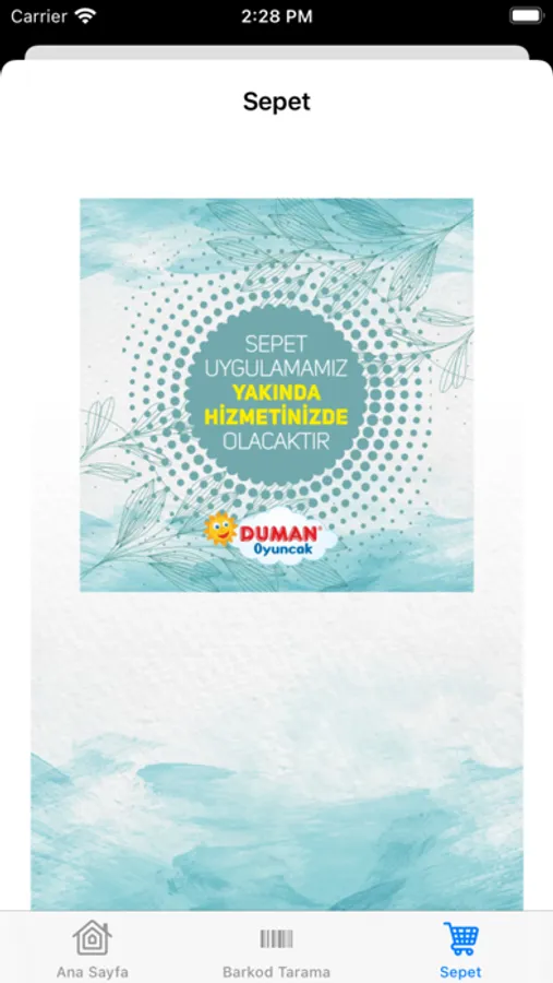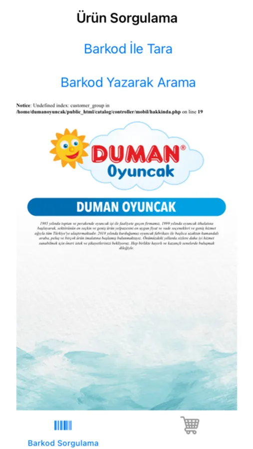 İzmir'de bulunan Duman Oyuncak mağazasında ürünlerin müşteri gruplarına göre özel tanımladıkları fiyatları görerek toptan alış verişlerinizde hızlı sepet oluşturmak için geliştirilen bir uygulamadır. www.dumanoyuncak.com adresinden üye olan herkes ister mağazaya ait siteden online alış-veriş yapabilir, isterlersede mağazaya giderek 25000 ürün içerisinden uygulamayı kullanarak ürünlerin barkodlarını okutup fiyatlarını görebilir ve sepet oluşturabilirler. Toptan alış-verişlerinizde beklemeden hızlıca işleminizi yapabilirsiniz.