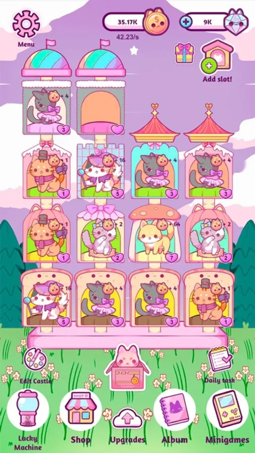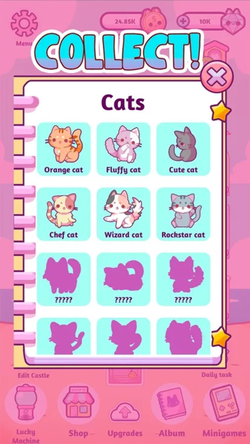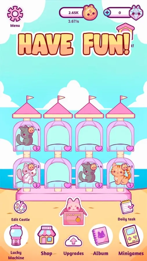Merge 2 cats to get a new adorable kitty. Start with a few kawaii kittens and then grow your castle into a big, lovely home!