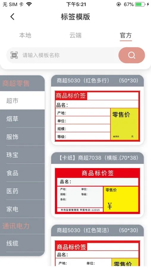【价签打印】价签打印,可批量打印商品价签、标签模版管理和标签模版编辑。