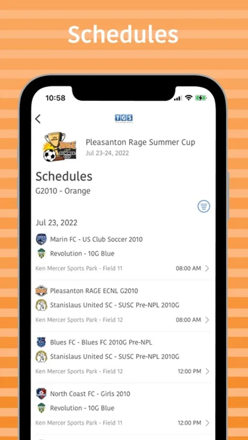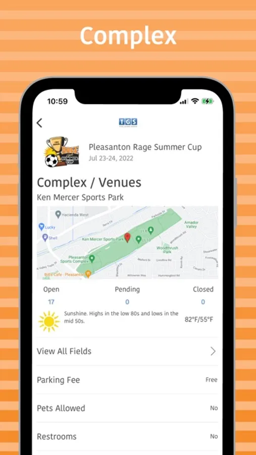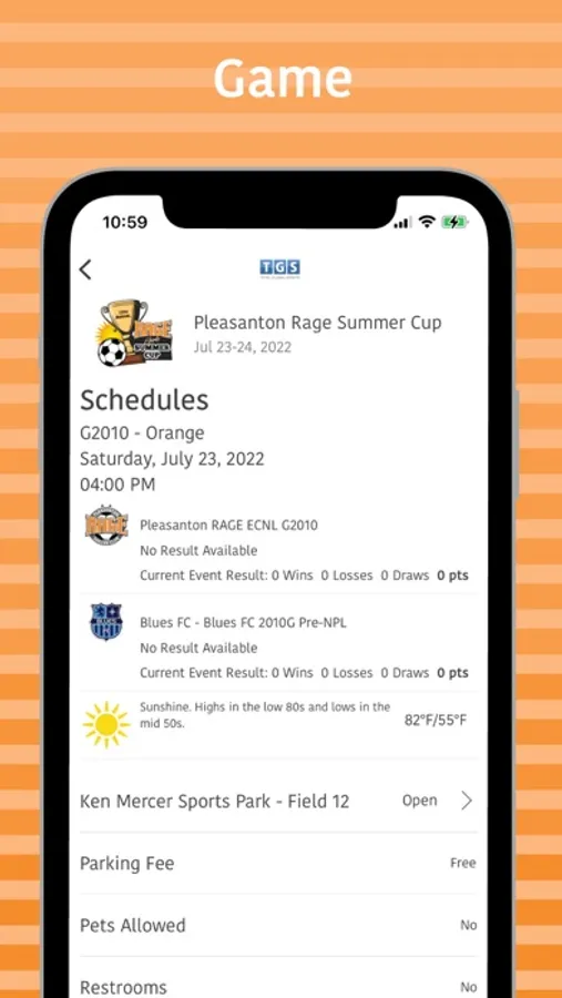 Pleasanton Rage event mobile app allows you to access all information about each of our events. This includes schedules, standing, complexes/venues, parking info, and weather. As a team admin you can use the app to mange your team info along with the ability to register to the events through the app. We look forward to seeing you at our events.