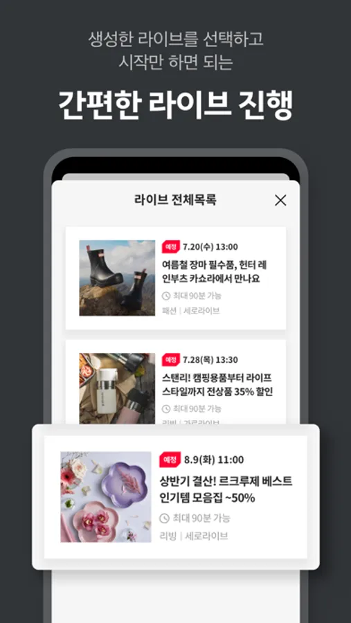 카쇼라에서 카쇼 러버 분들과의 실시간 소통을 통해 내 상품과 브랜드를 알려보세요.