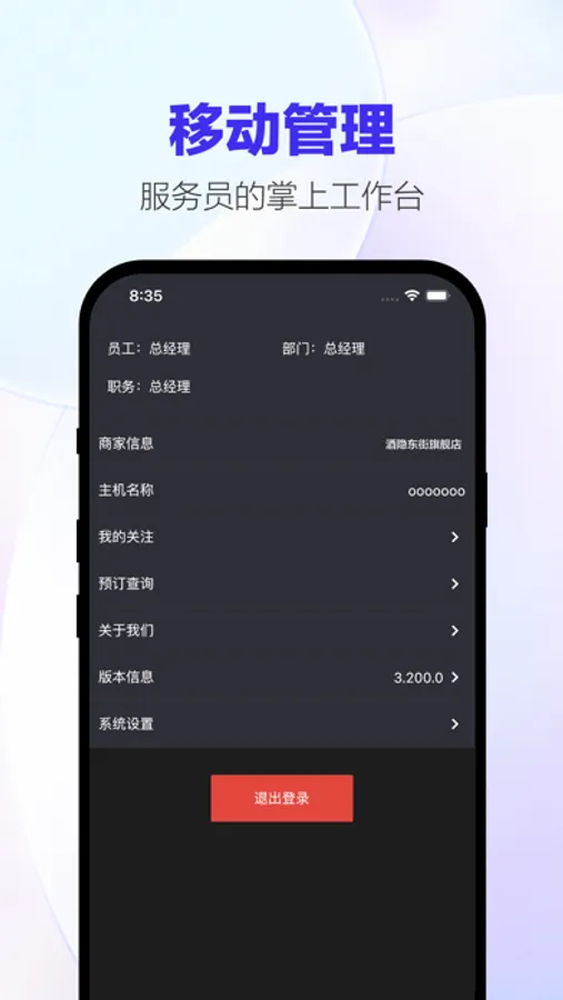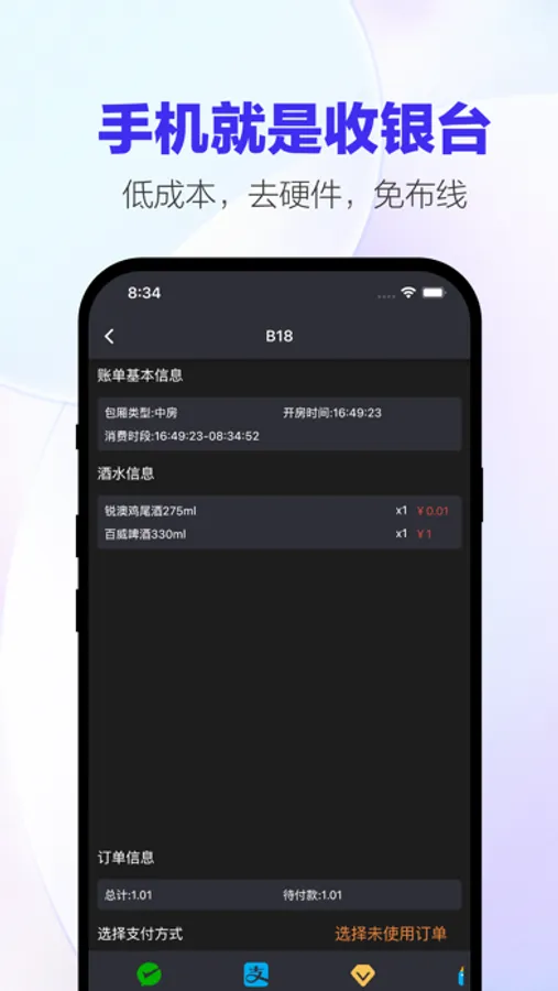 移动POS是一款基于服务员使用的APP,必须跟配套的收银系统结合使用.