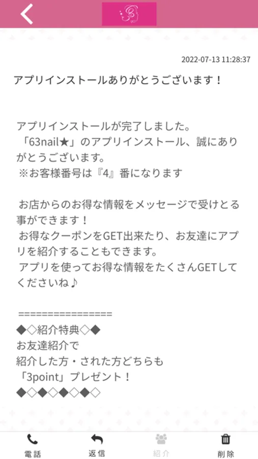 63salonのアプリをSNSを通じてお友達に紹介する事ができます。