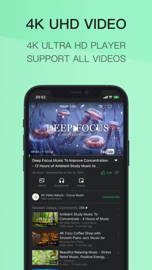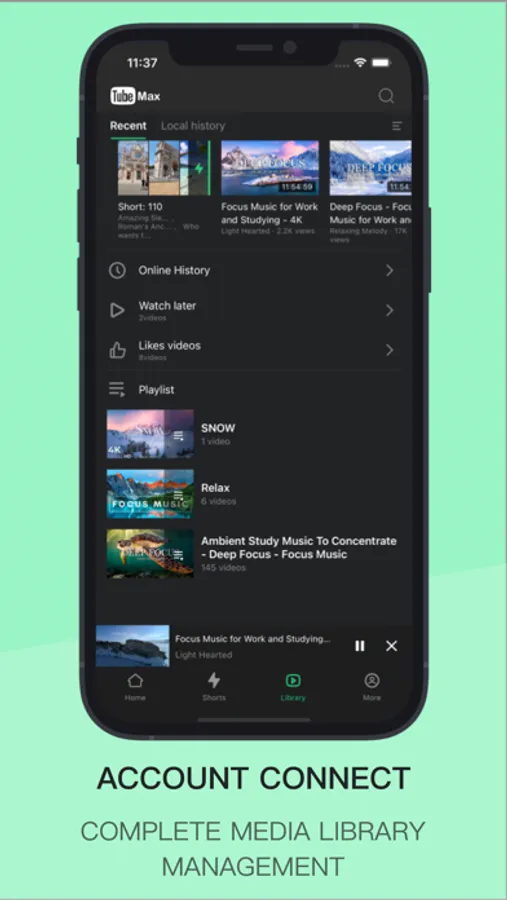 TubeMax - Pure,Advanced,Premium YT is an ad-free music player app that helps you watch high quality music videos with up to 4K UHD resolution, free background playback, and free picture-in-picture playback.