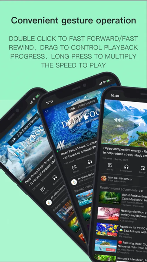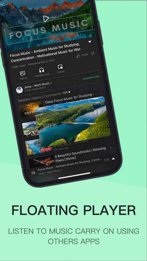 ● The floating video player application allows you to play videos in the background (picture-in-picture) when you exit TubeMax, while you can listen to music, surf the Internet, play games, etc.