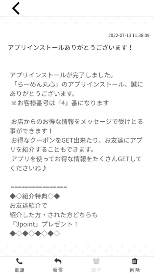 らーめん丸心のアプリをSNSを通じてお友達に紹介する事ができます。