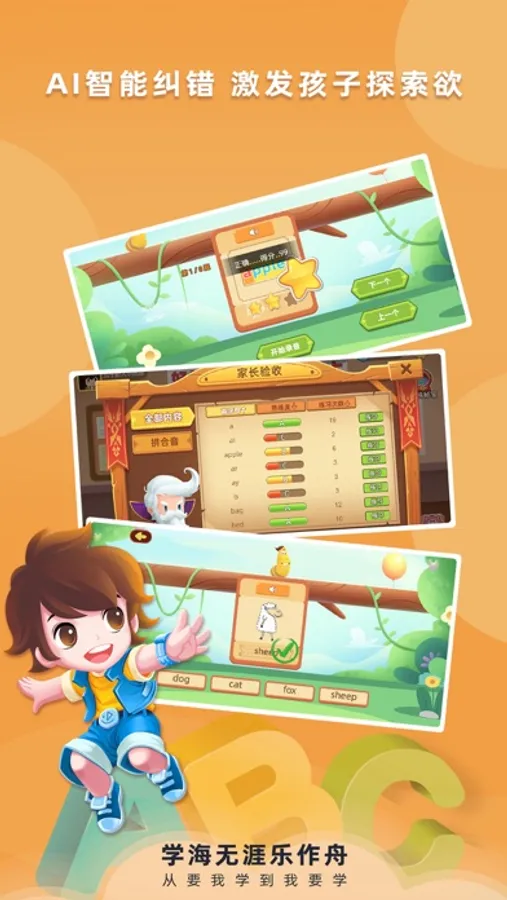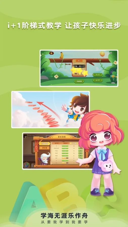 《乐作舟ABC》是一款超级强大的游戏化学习软件,让孩子在乐中学、玩中练,让孩子从爸妈要我学到我自己要学!孩子主动学,爸妈少担心。