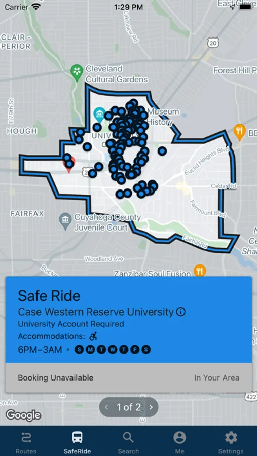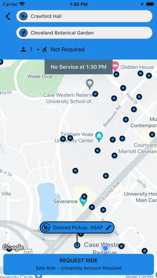 Spartan Ride carries Case Western Reserve University students, faculty and staff around campus and part of University Circle. The app provides access to on-demand after-hours transportation through Safe Ride, which runs seven days a week between 6 p.m. and 3 a.m.