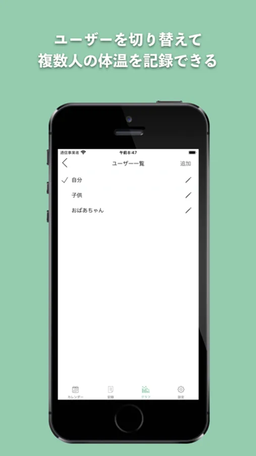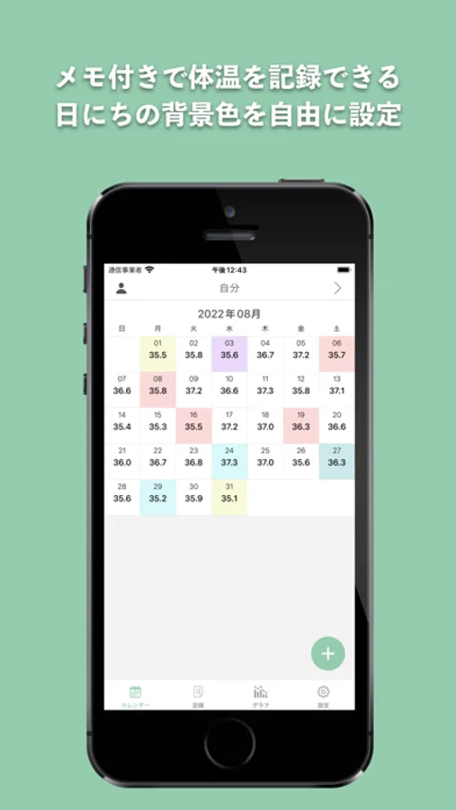 このアプリは、体温記録してカレンダーで表示できるアプリです。