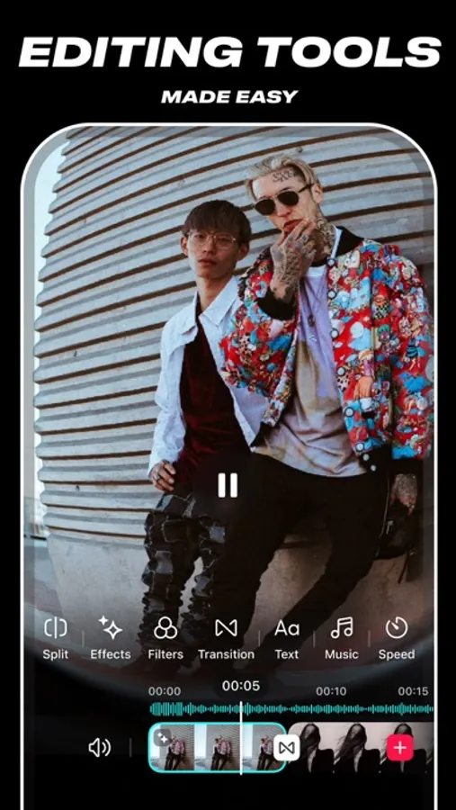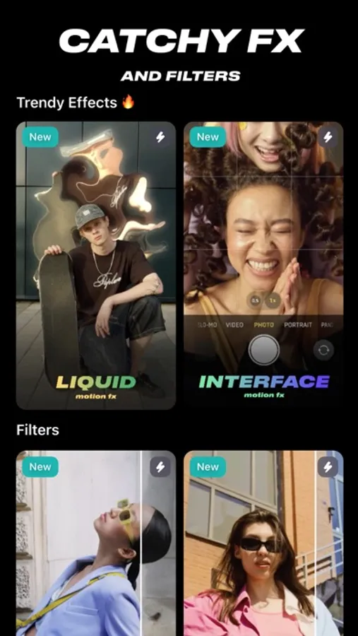 Combine your videos and photos into a video with cool transitions, aesthetic effects and filters to the beat of trendy music in just a couple of minutes.