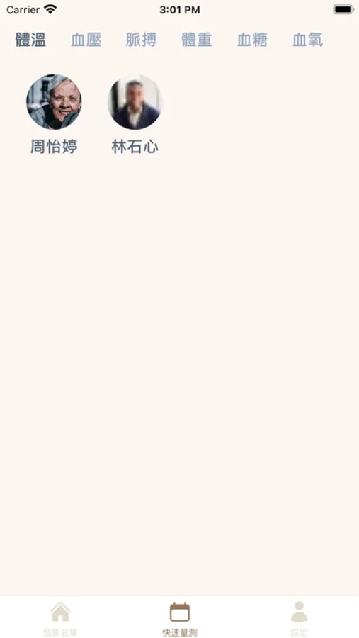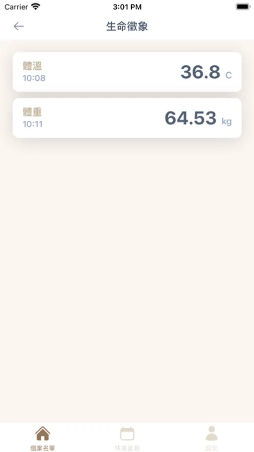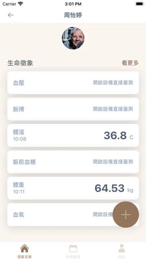 快速紀錄每日的額溫、體重、血壓、與血糖