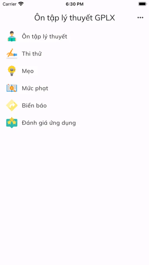 Ứng dụng giúp bạn ôn tập để chuẩn bị cho bài thi sát hạch lý thuyết cấp bằng lái xe cơ giới đường bộ.