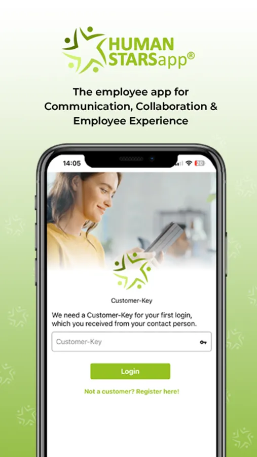 After downloading the community app, please enter your company's customer key. Login with your username and password.