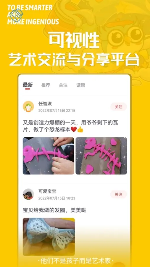 美育星球APP主营业务为在线销售实体美育材料盒子,用户收到材料盒子后,可以通过APP的教学视频学习相应主题的美术作品创作方法,并且可以通过小嘟圈分享和交流自己创作作品的心得体会。