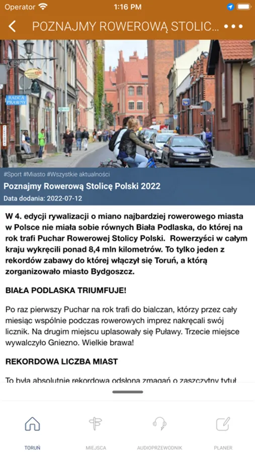 Aplikacja sprzężona jest ze stroną miejską, dzięki czemu ma stały dostęp do bazy aktualności, informacji, wydarzeń oraz komunikatów publikowanych na www.torun.pl. Do dyspozycji użytkowników oddanych jest szereg modułów, osobisty schowek (Planer) oraz prognoza pogody (z serwisu pogodawtoruniu.pl).Bezpłatna aplikacja miejska Torunia na urządzenia przenośne.