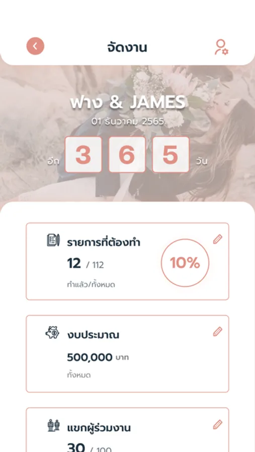 ศูนย์รวมเว็ดดิ้งแพลนเนอร์ จัดการงาน ขั้นตอนพิธีการ และร้านค้าที่จำเป็นในงานแต่งครบจบในแอปเดียว