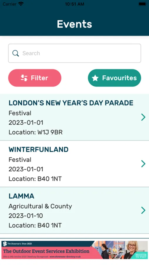 includes online access to the dates information on our website and app, where you can search by date, area and event type.
