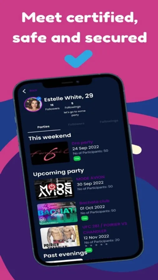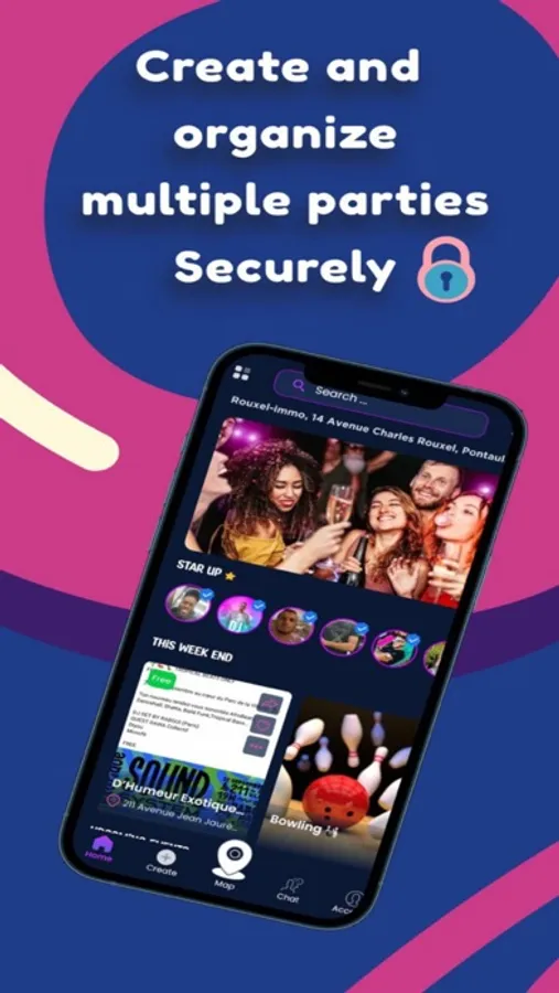 Vous pouvez vous même être l'un de ces organisateurs de soirée, et inviter les membres de l'application à participer à vos soirées.