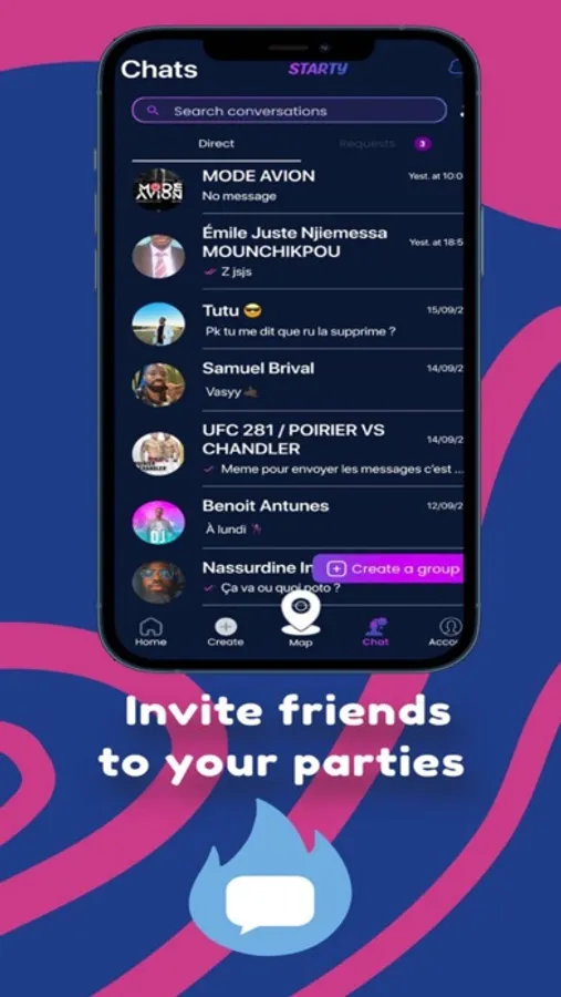 Depuis l'application, communiquez directement avec les organisateurs de soirées afin d'y participer.