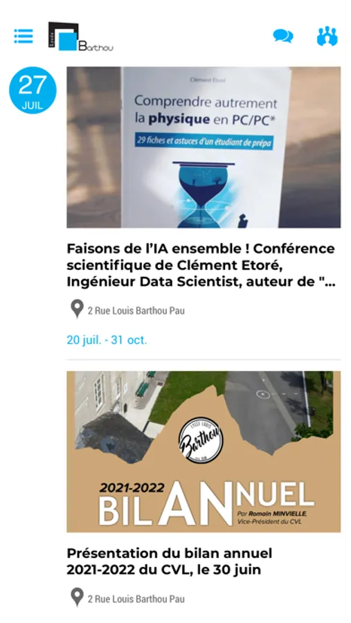 Trouvez les évènements du Lycée Louis Barthou organisés par le lycée, les associations, et les enseignants et les classes prépas.