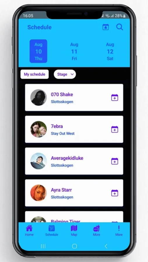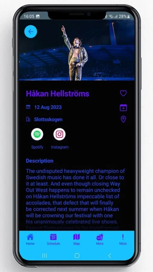 Get a complete overview of the festival and enhance your experience with exciting features. Explore the schedule and create your own personalized lineup. Discover artist profiles, listen to their songs on Spotify, and immerse yourself in their performances. Navigate the festival grounds with an interactive map, locate essential facilities, and explore diverse food trucks and vendors.